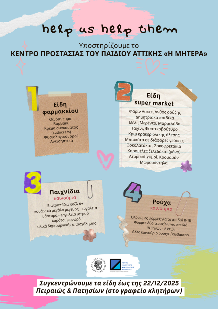 Το Κέντρο Υποστήριξης Διδασκαλίας και Μάθησης της ΑΣΚΤ αναλαμβάνει την πρωτοβουλία να υποστηρίξει και φέτος το Κέντρο Προστασίας του Παιδιού Αττικής «Η ΜΗΤΕΡΑ» που αποτελεί ένα από τους κύριους φορείς παιδικής προστασίας στη χώρα υπό την εποπτεία του Υπουργείου Εργασίας Κοινωνικής Ασφάλισης και Πρόνοιας. Είναι ένα κύριο κέντρο υποδοχής βρεφών που διαθέτει οκτώ περίπτερα φιλοξενίας […]